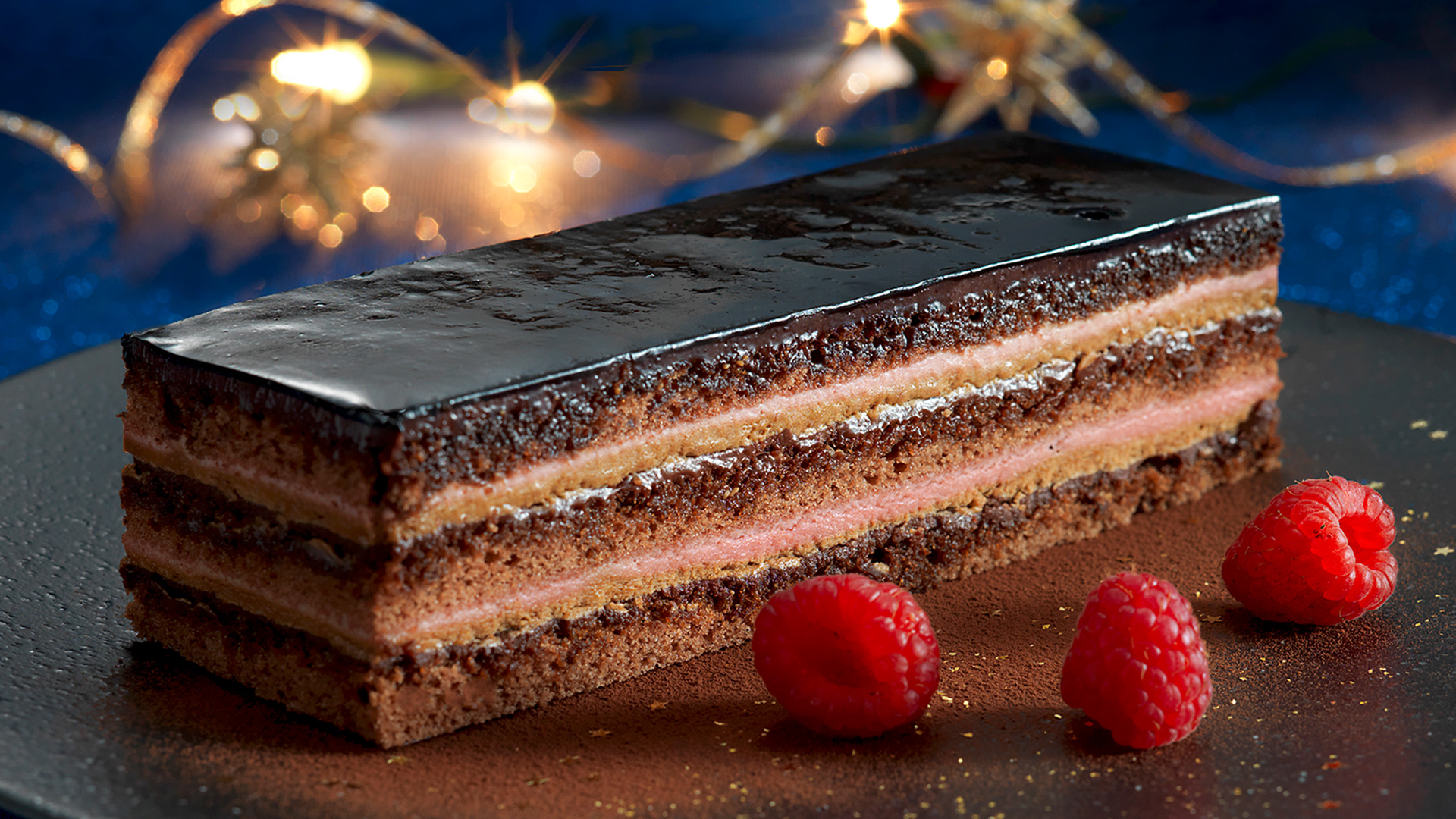人気イラストレーター・桜田千尋氏が手がける「満月珈琲店」の世界より、宮沢賢治『銀河鉄道の夜』をモチーフに創作されたデザート「南十字星のオペラ」。 夜空に輝く南十字星を背景に、銀河鉄道が駆け抜ける情景を、オペラケーキで表現した幻想的な一品です。